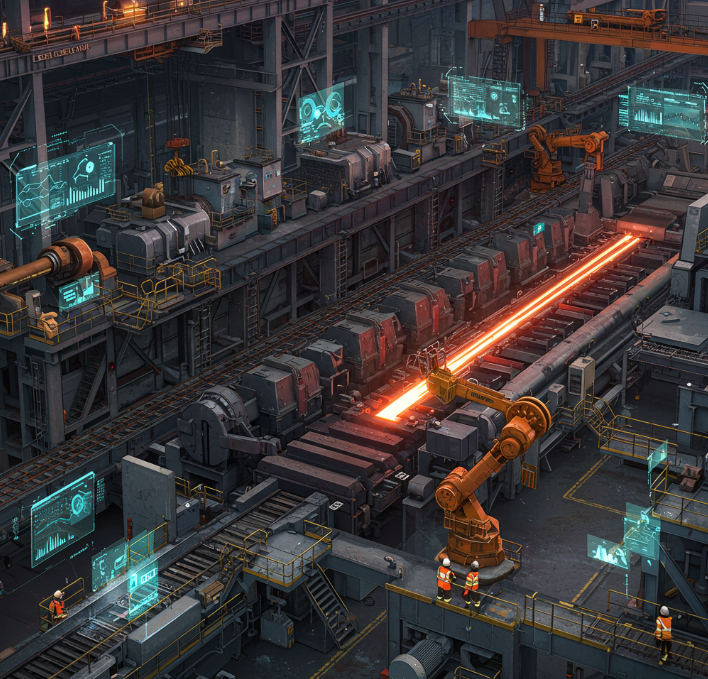 제철소의 로봇화로 인해 사람의 위험성에서 벗어나게 하는 모습