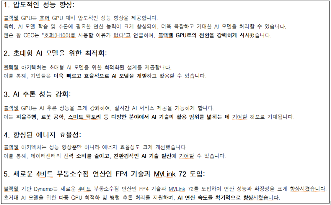 젠슨 황은 “AI 모델은 더 거대해지고 있고, 이를 뒷받침할 인프라가 필요하다. 블랙웰은 그 요구에 가장 가까운 답”이라고 강조했습니다.