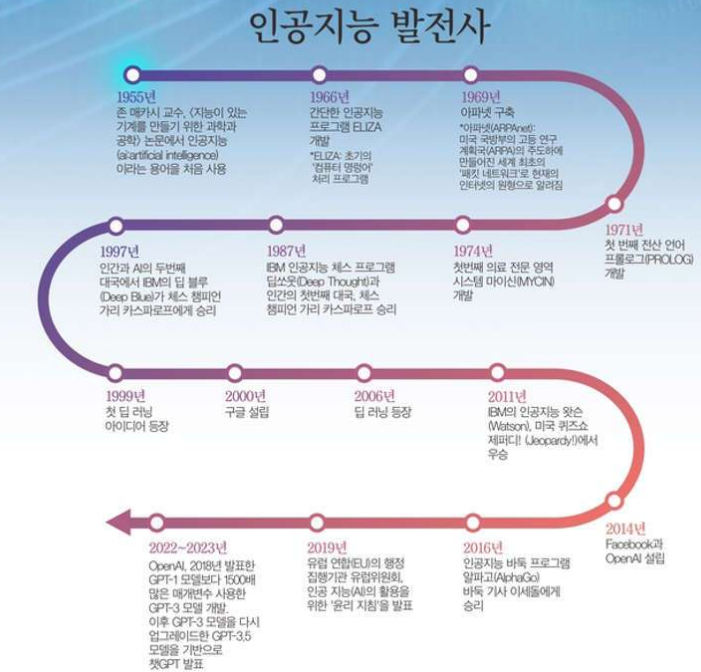 | 2020년대 | ChatGPT, Bard 등 대형 언어 모델의 발전, AI 기반 창작 도구 등장 |